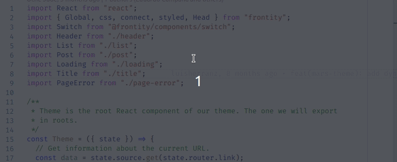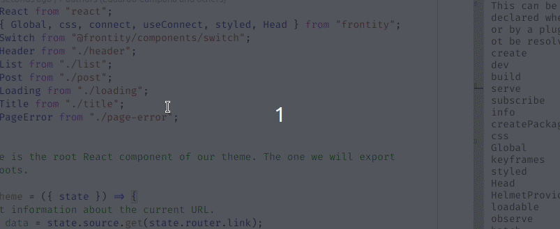 When you re-export code with re-defined types (like in the case of connect) you would have to write the documentation spreaded on several files. For example, if you want the docs to be shown when you place the mouse over connect, in the import sentence, that documentation must be written in packages/frontity/src/index.ts#L15-L26.