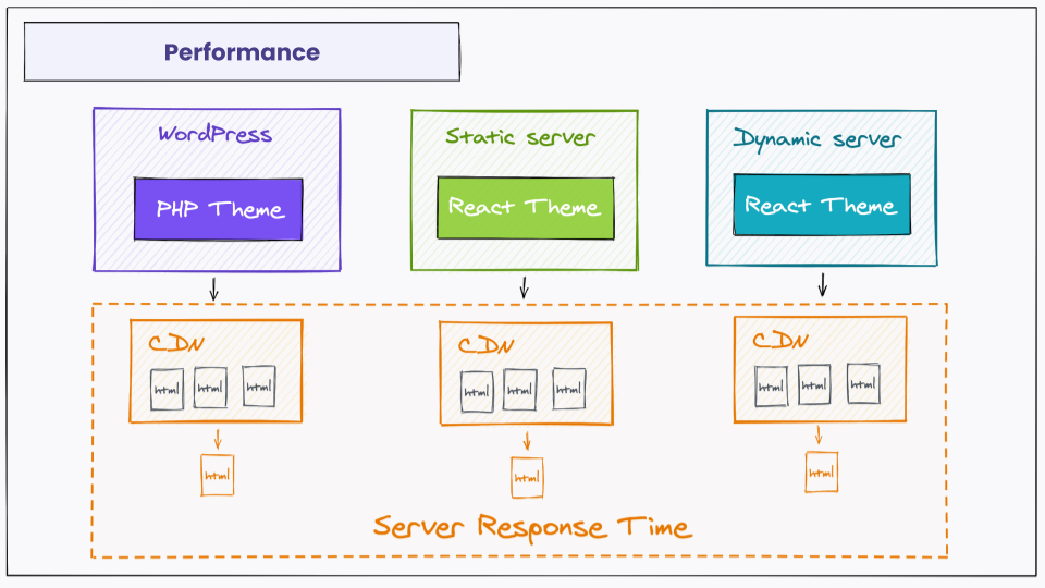With a good cache layer and Frontity you not only gain speed in your site but a better Developer Experience by creating your sites w/ React