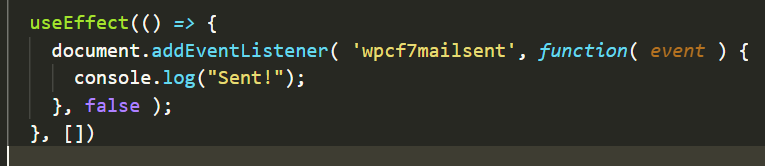 The problem is I always get “undefined” as status from state.cf7.forms[ id ], whether I try to access it with a useEffect listening to any change to the state whether I access it after we got the response (I put an eventListener on “submit” of the form)…
