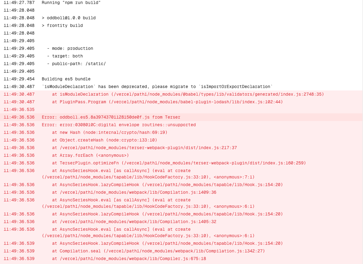 I tried this solution but it did not help. I also tried changing node version to 16.x both inside package.json and in Vercel settings but that gave me Error: Found "engines" in "package.json" with an invalid Node.js version range: "16.x". Please set "engines": { "node": "12.x" } in your "package.json" file to upgrade to Node.js 12.