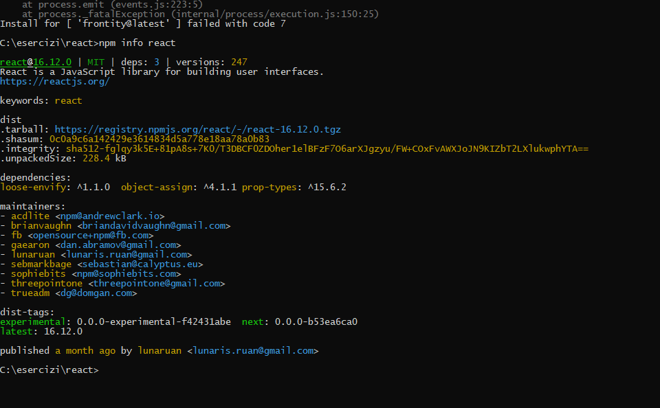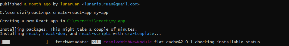 C:\esercizi\react>npx frontity create my-app && cd my-app