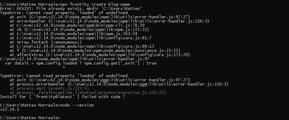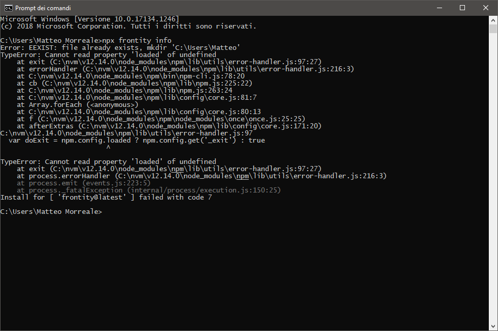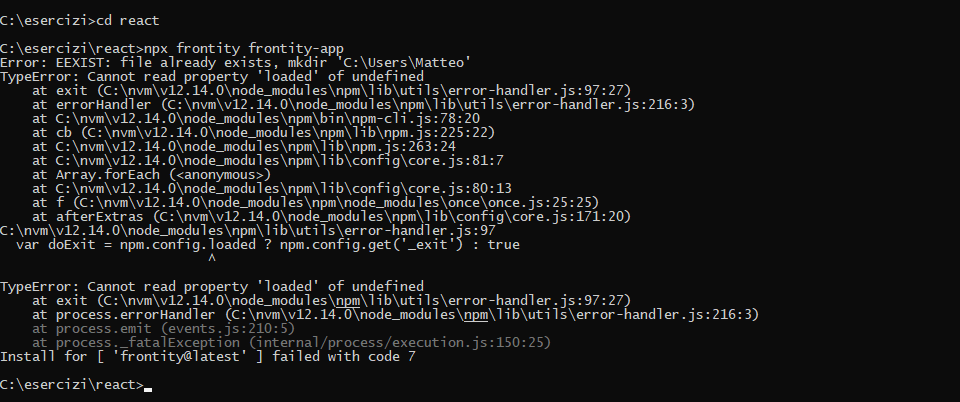 Error: EEXIST: file already exists, mkdir āC:\Users\Matteoā
