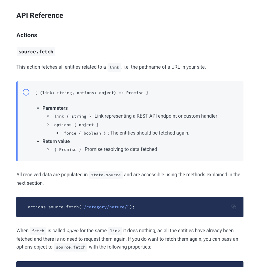 To keep this one up to date: Our typedoc approach didn’t work as expected. More info about the reasons here: Adopting a standard way to document Frontity APIs. We are going to write our APIs manually for now.