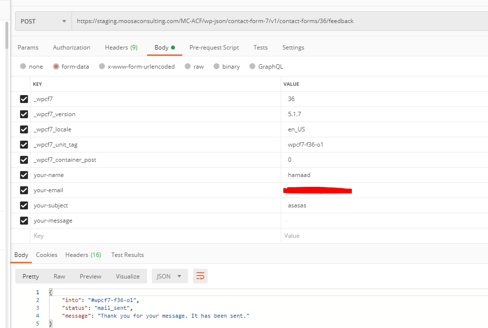 I am trying to integrate Contact Form 7 from frontity with my WordPress site. When I try to submit form I am getting this error: