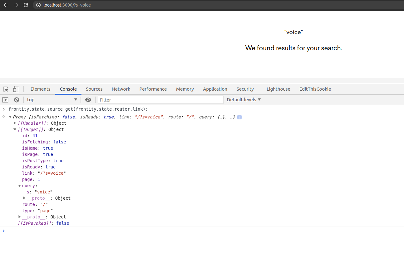 In particular look at the function handleSubmit in search-form.js which calls actions.router.set(), and the main component in search-results.js with gets the data with a call to state.source.get(state.router.link).