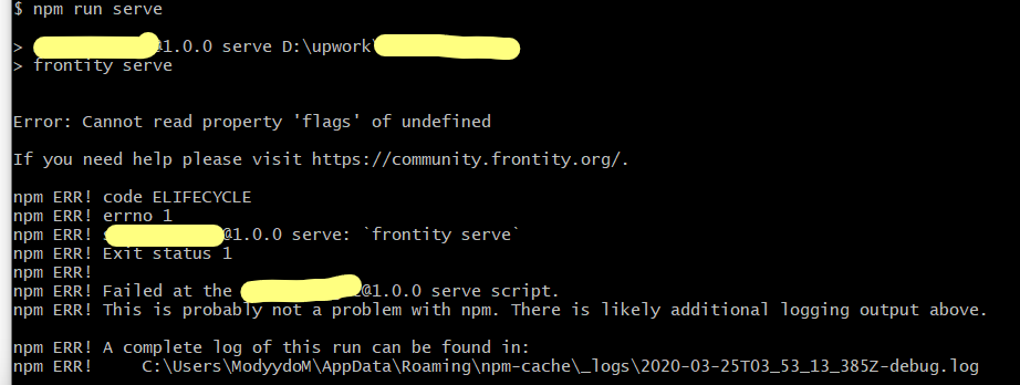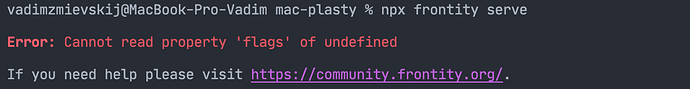 npx frontity build completes without issue npx frontity serve fails with the following message:
