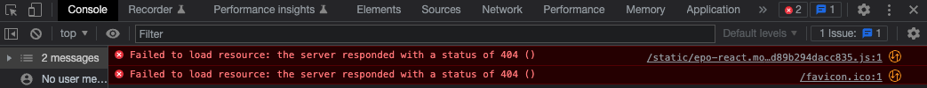The problem is that the console is returning a 404 error as seen in the following image: