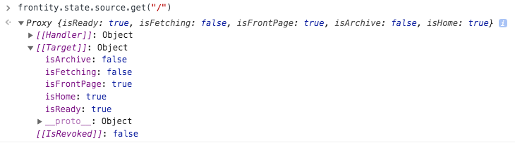 If you use frontity.state.source.get("/") in the console of your browser, you can see the properties of the "/" link have changed (from the default ones) and now are: