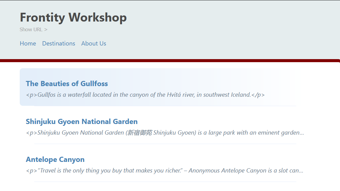 Hello, I am going through the Finishing Touches > Other Things to Do section of the Frontity Tutorial. I am on the first step: Show the post excerpt on the listings page. I have done everything I want to do for this step, except for whatever reason the excerpt has