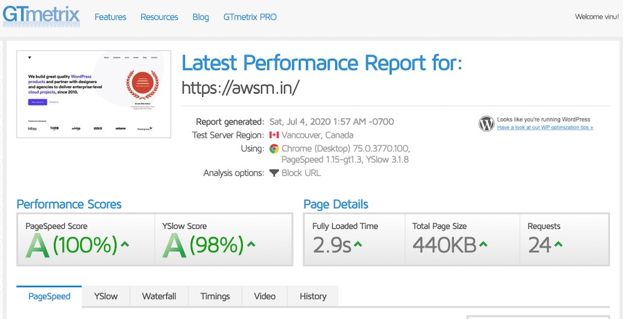 We were able to hit a CLEAN 100 in speed tests in Google Page Speed Insights Desktop and Gtmetrix! That too when the WordPress install was hosted in a basic, slow VPS with over 100 other websites!! Thatβs how sweet is Frontity!