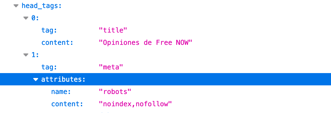 You will see that the meta tag for robots is arriving in head_tags: