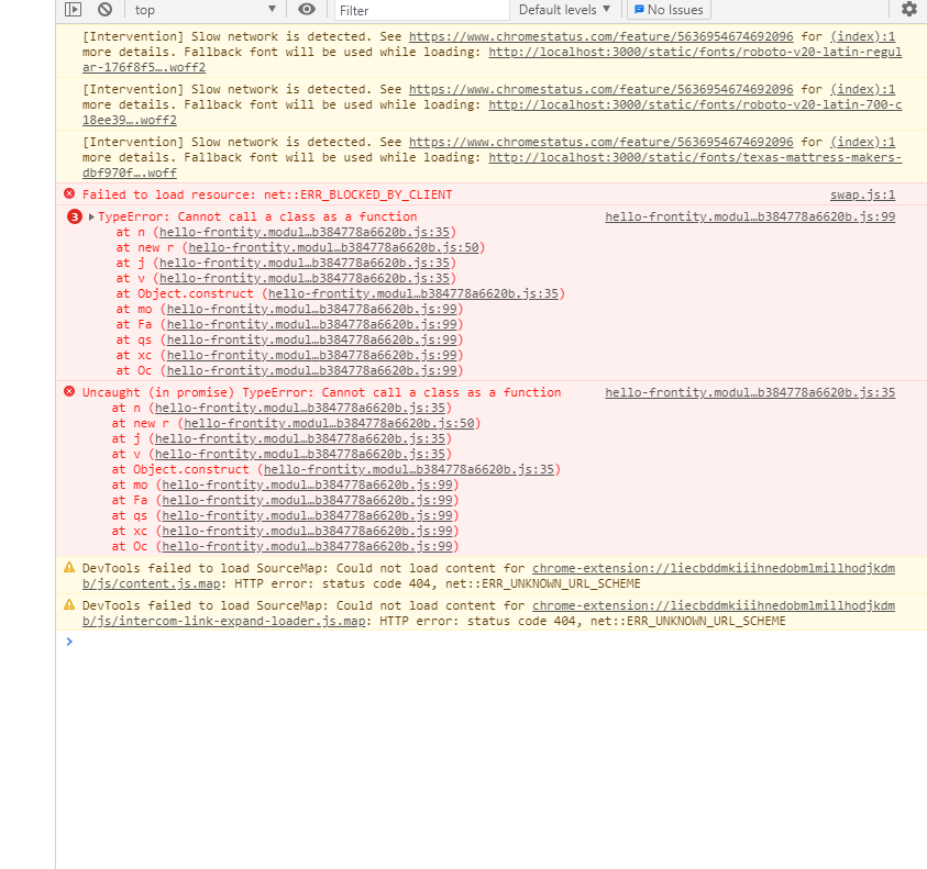 But I got this error on the server: TypeError: Cannot call a class as a function.