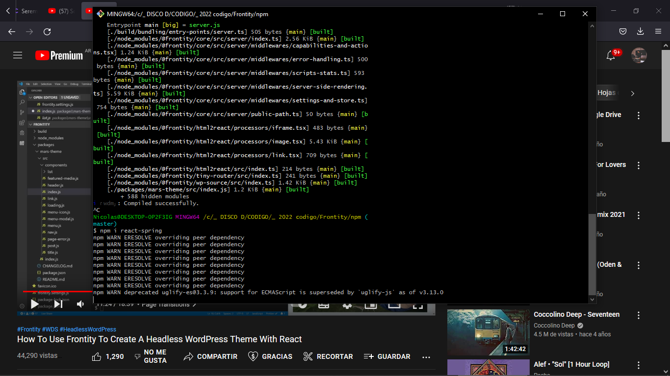 In deed what I need to know is how to install react-spring, or npm i react-scroll-horizontal and put to work the dependency in Mars Theme, for example.